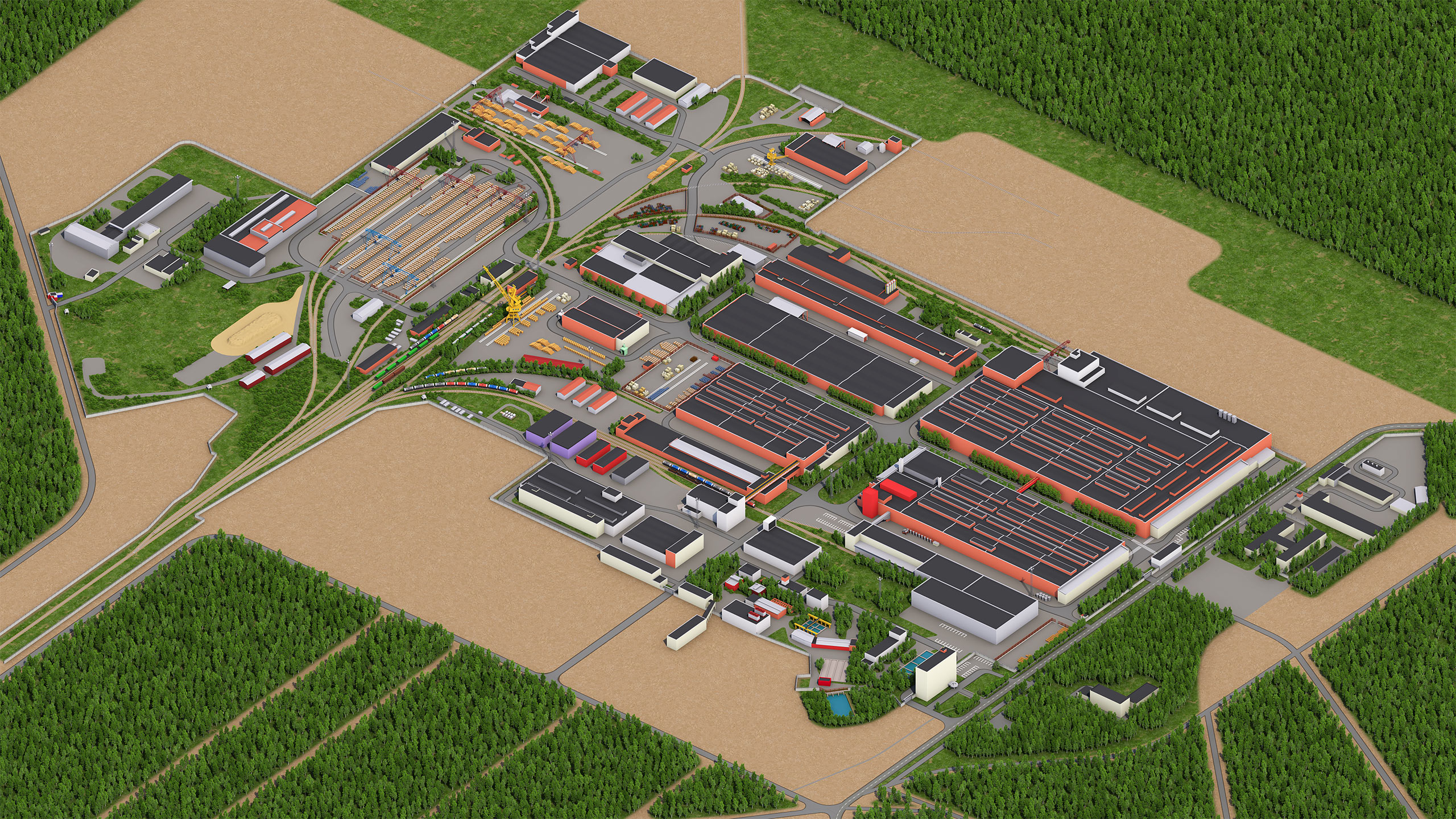 - Воссоздали цеха, склады, офисы, ж/д пути, логистику и прилегающие территории