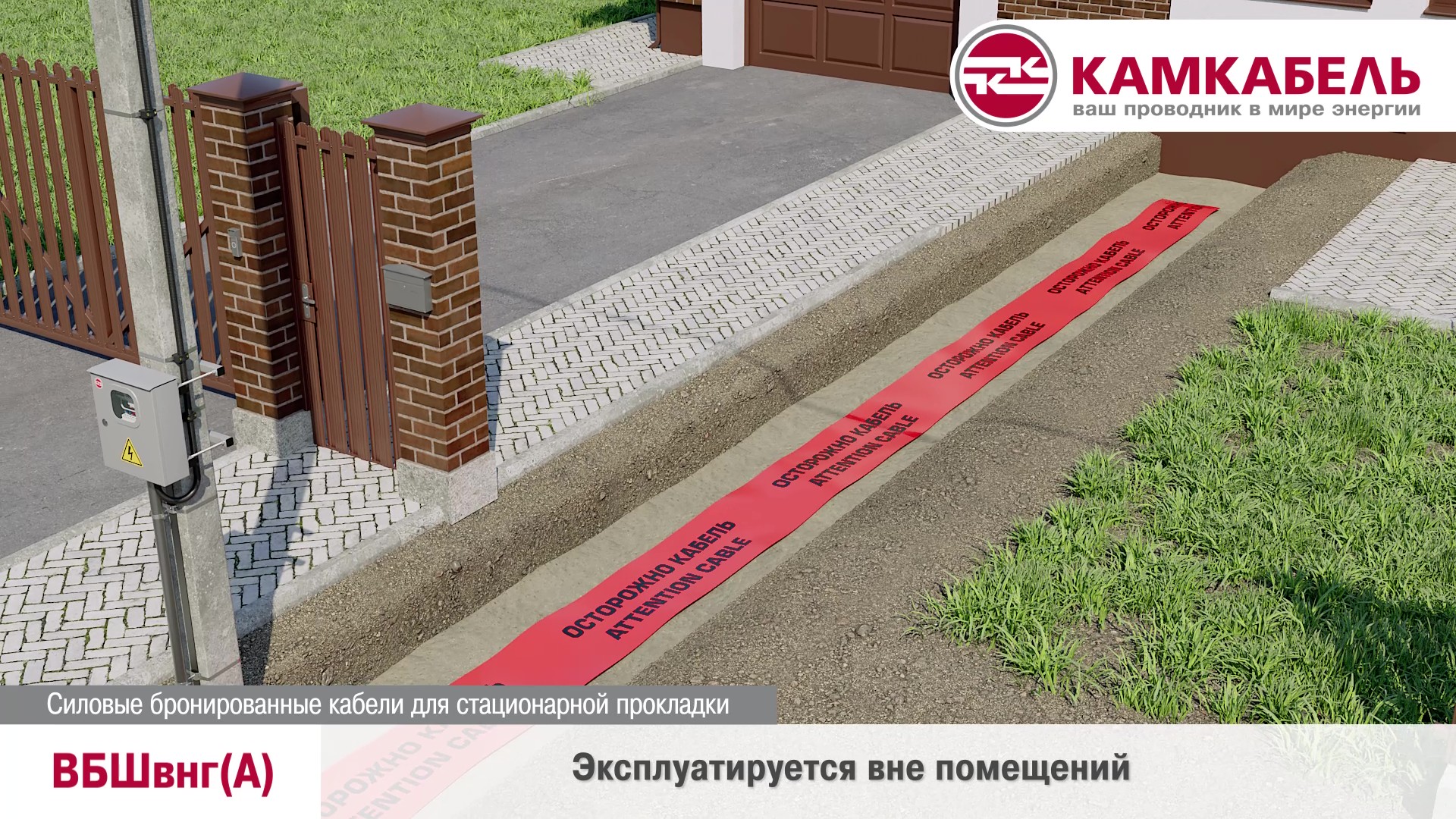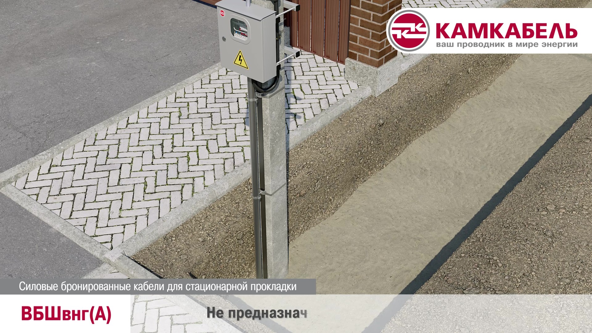 Задача: показать прокладку бронированного кабеля ВБШвнг(А) для бытового применения. Формат — 3D-анимация с акцентом на:
