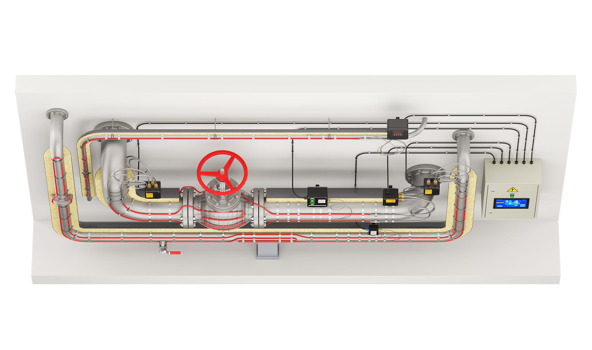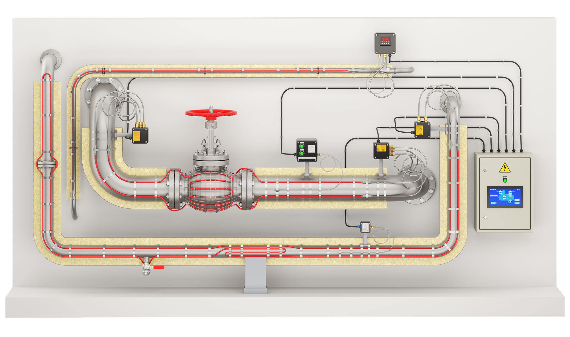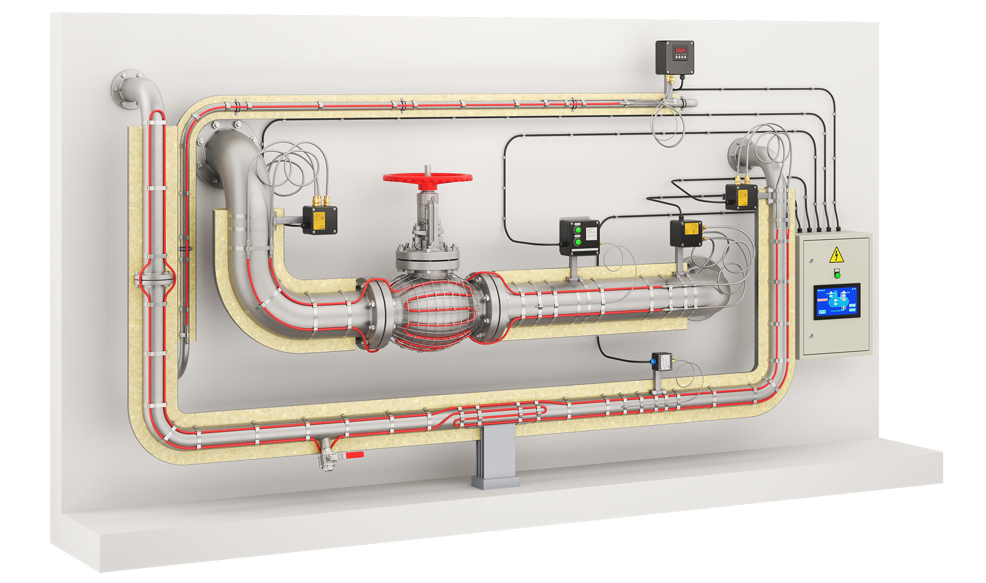 Создать реалистичный 3D-макет участка трубопроводной системы с промышленным кабельным обогревом. Макет предназначен для показа на выставках, в презентациях и рекламных материалах.